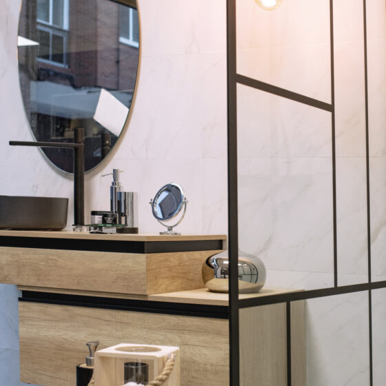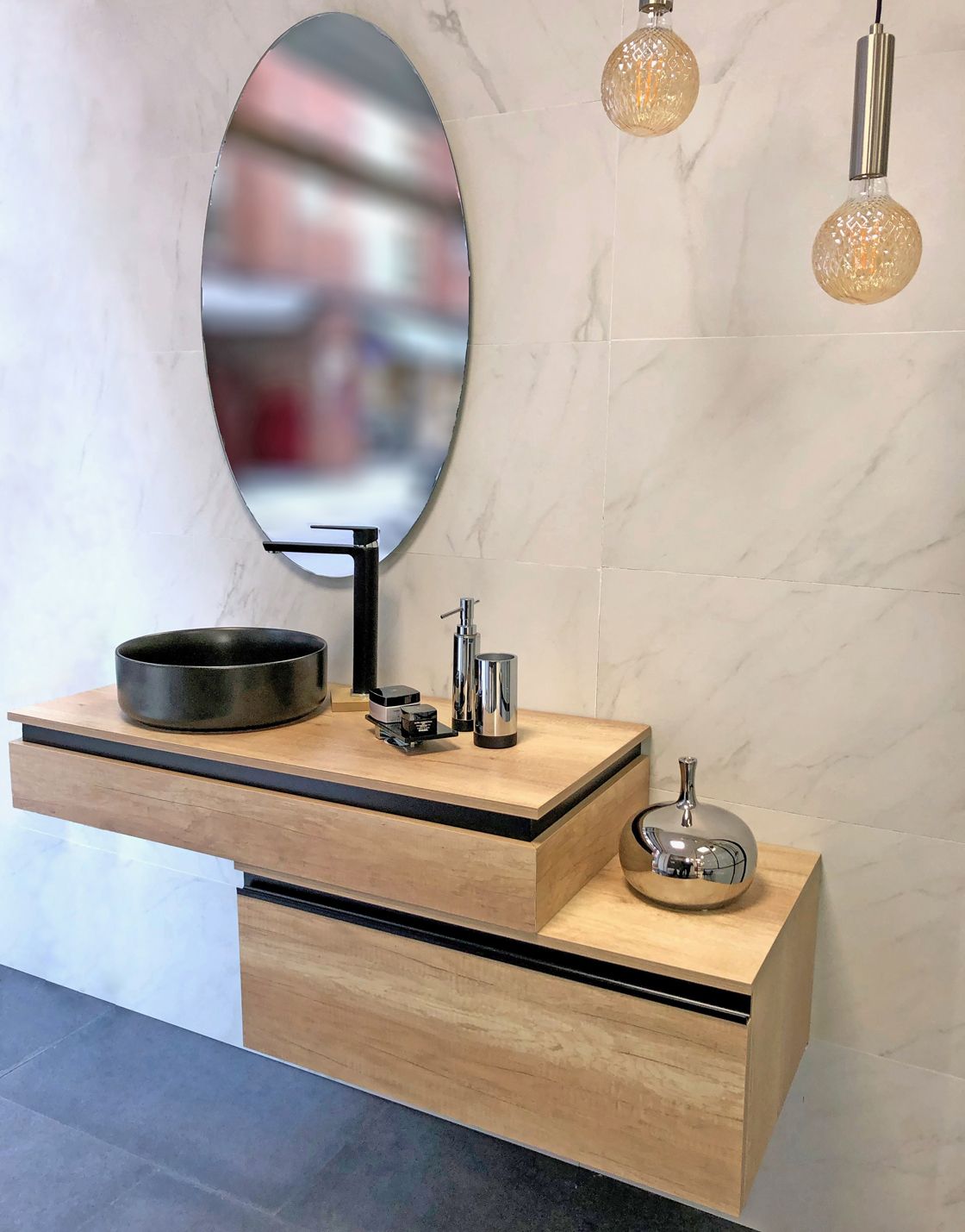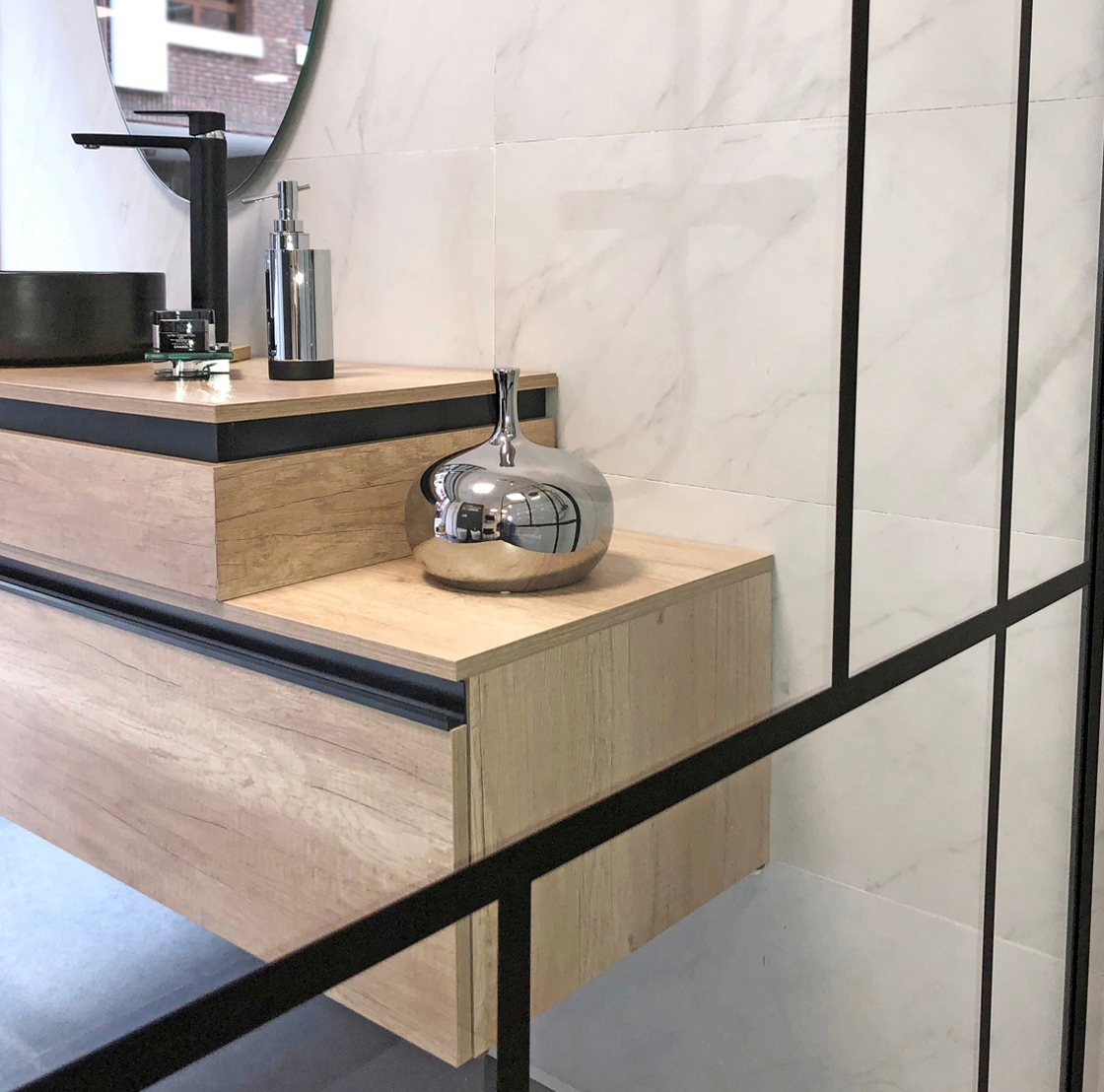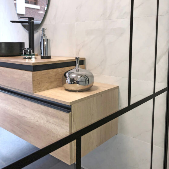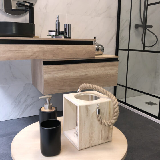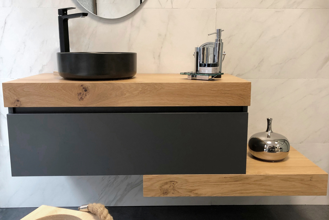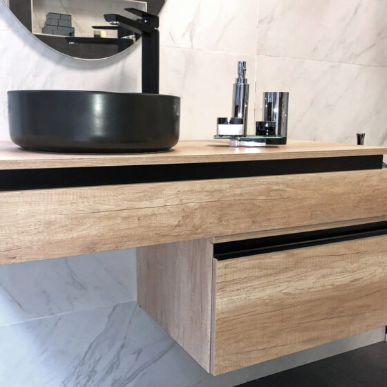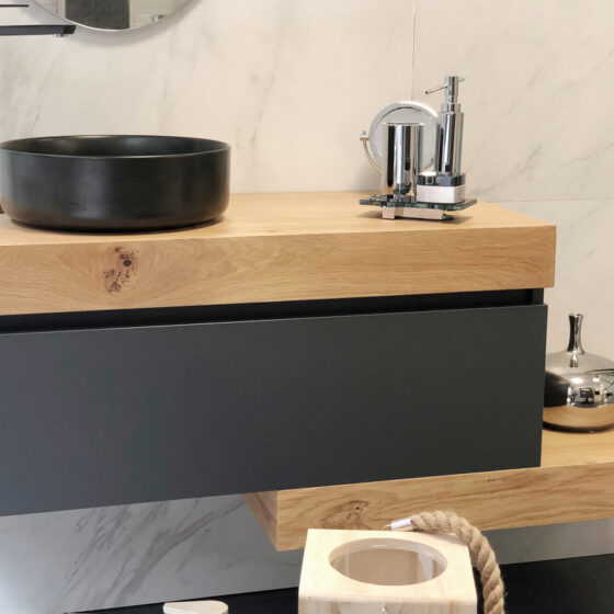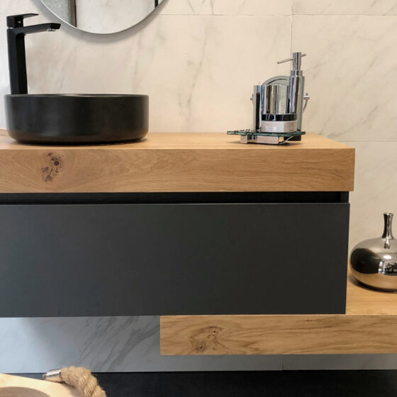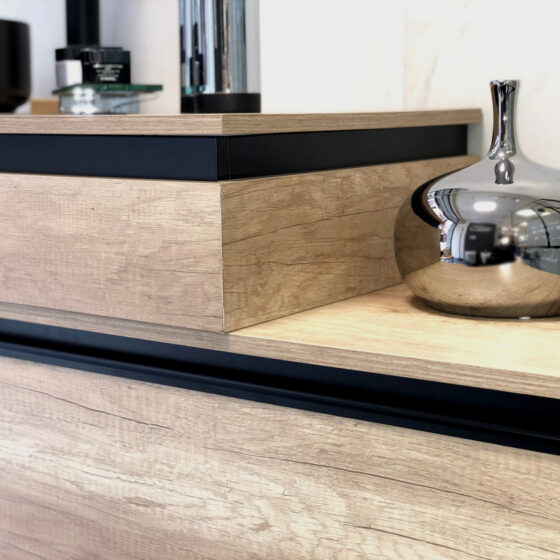 Cajón Roble Olmo, detalle Aluminio Negro 80×45 cm)