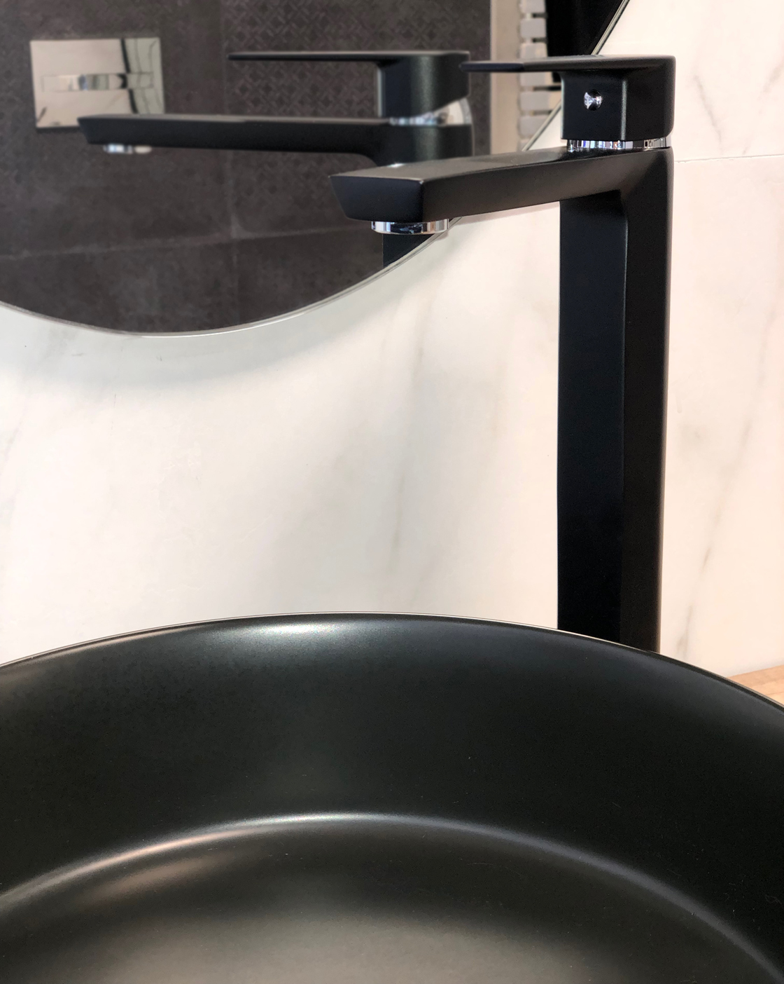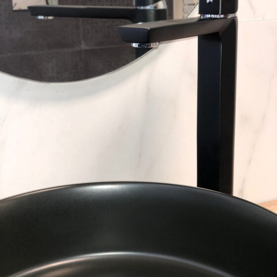 Monomando lavabo caño alto Aroha Negro Mate
