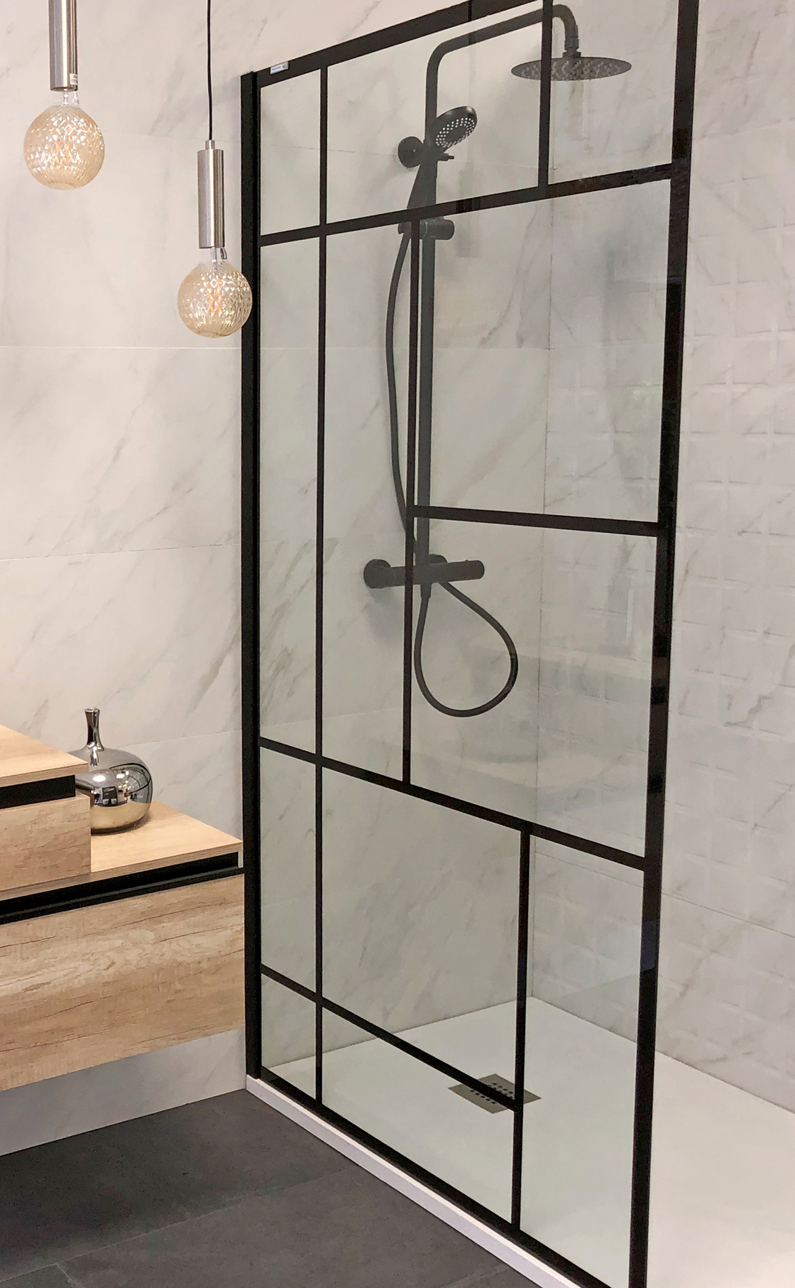 Mampara de ducha Fijo OT-200, perfil Negro