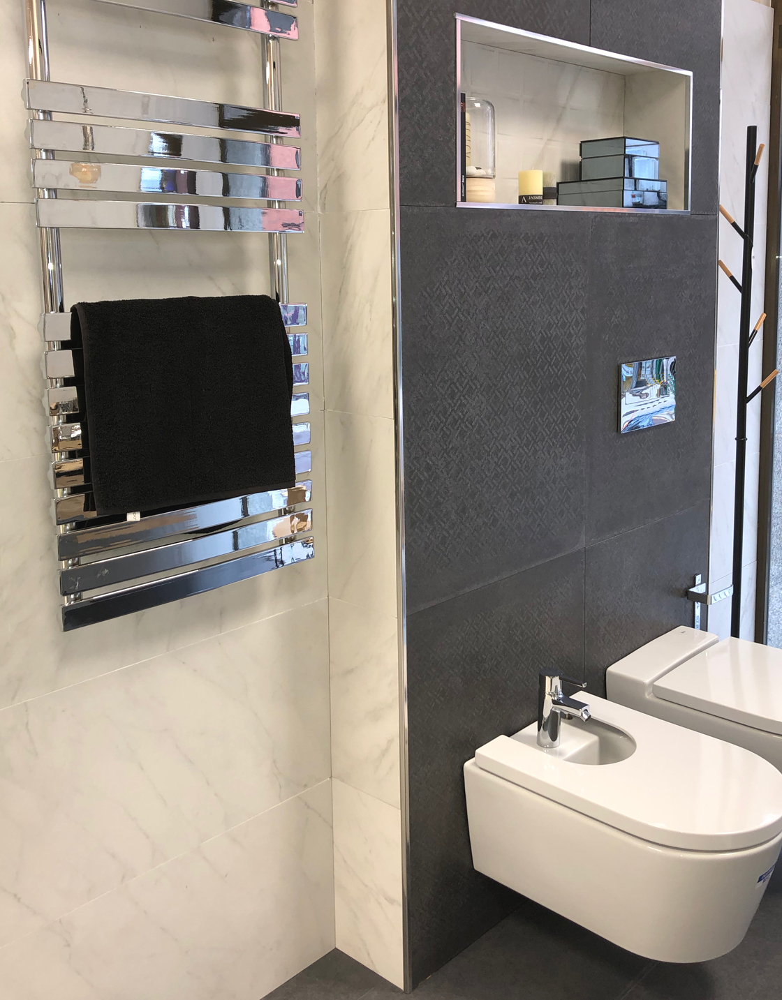 Escobillero-Portarrollo de pie Milán Cromado