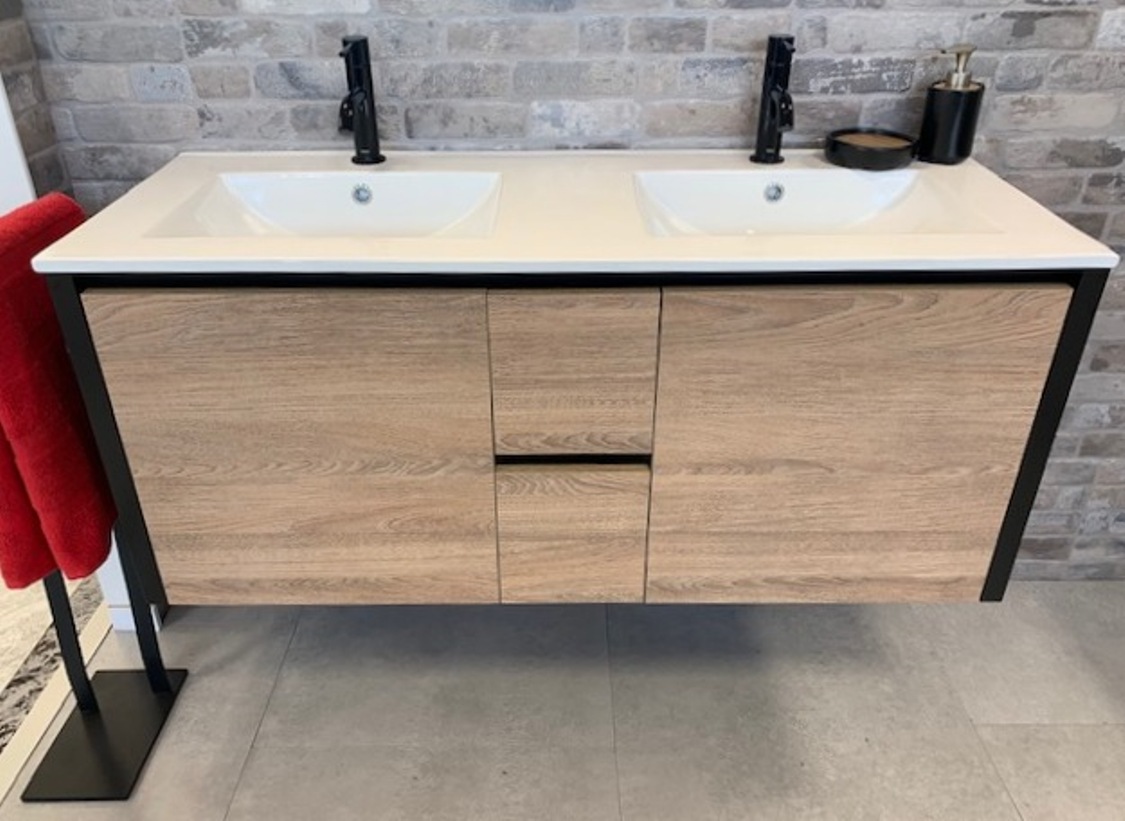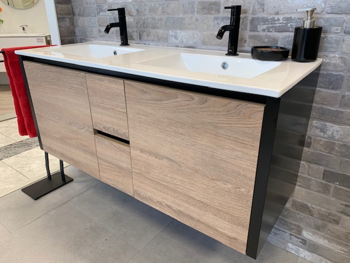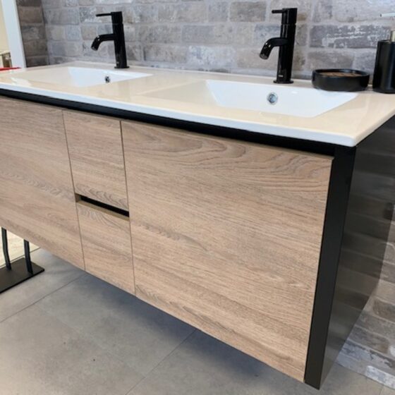 Mueble Zen Oregon/Blanco Mate (opción Negro), tirador uñero Negro Mate 120×45 cm