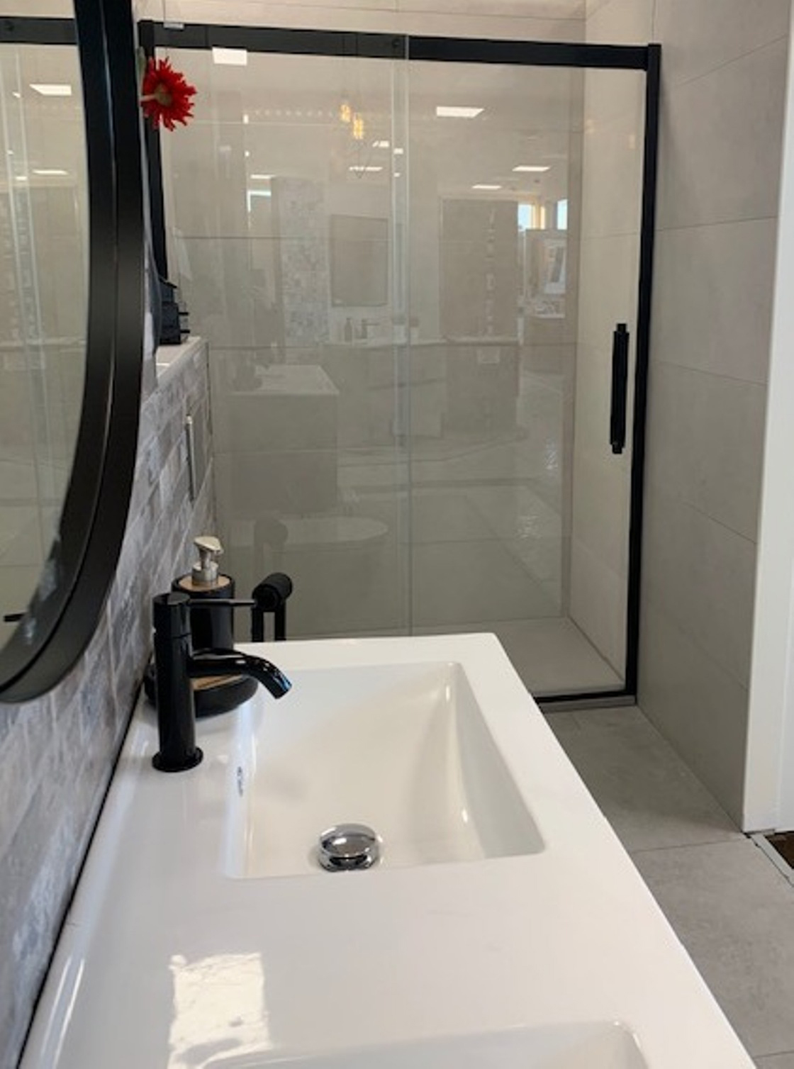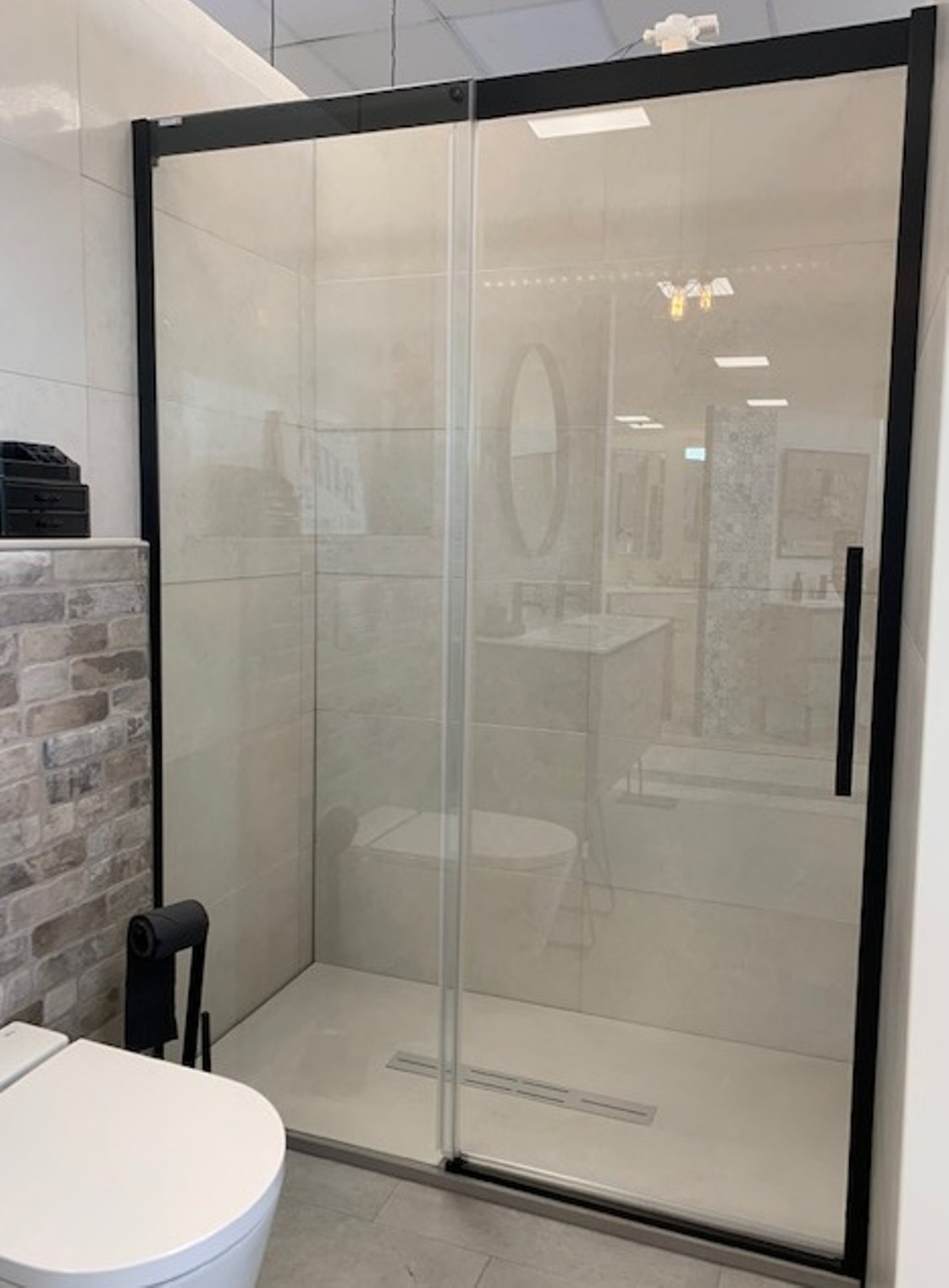 Frontal ducha Hit, perfil Negro, cristal transparente 140cm